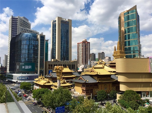 静安寺处于上海最繁华的静安区南京西路,寺庙墙外便是热闹非凡的商业中心,墙内便是青灯古佛、宁静寺院,是闹市中难得的一处清净之地。