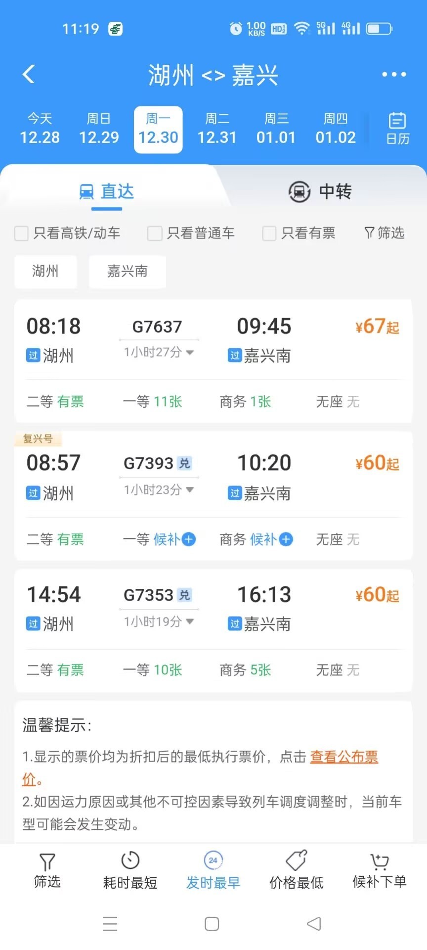 而尴尬可不仅于此,2025年1月5日将迎来大调图,目前为止,还查不到嘉兴至湖州的直达高铁车次,个人猜测,很大情况下会暂停部分或全部车次,那未来来往于嘉兴与湖州之间,高铁会很难,那能否破局呢?