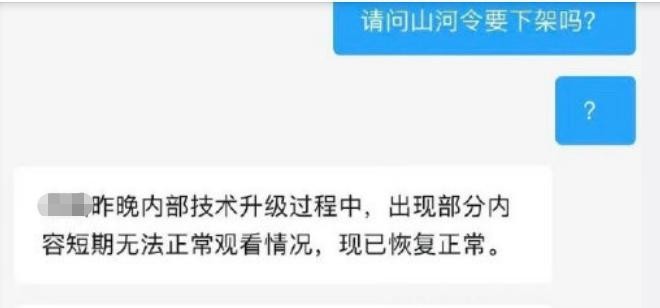 而《山河令》再次受到关注的原因就是,近日片方下架了此剧,本以为是受到了张姓明星的影响,但很快这部剧又重新上架,一时间网友们也热议纷纷,都在质疑片方是为了故意蹭热度,对此有观众还专门询问了片方,