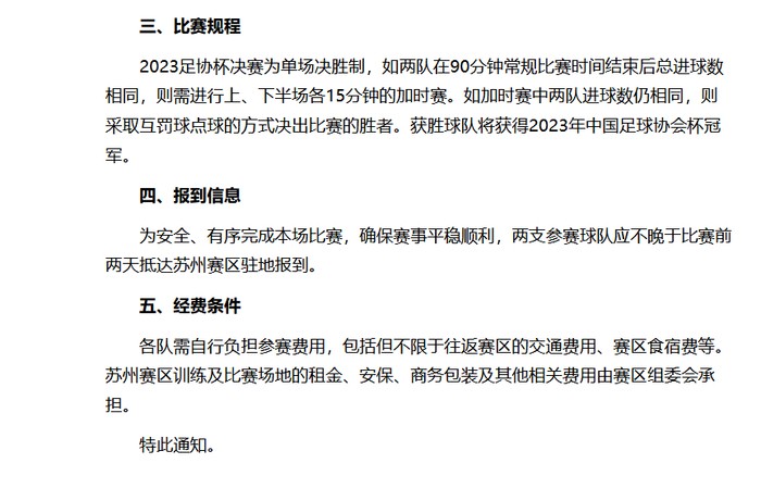 足协官宣:2023足协杯决赛11月25日在苏州举行