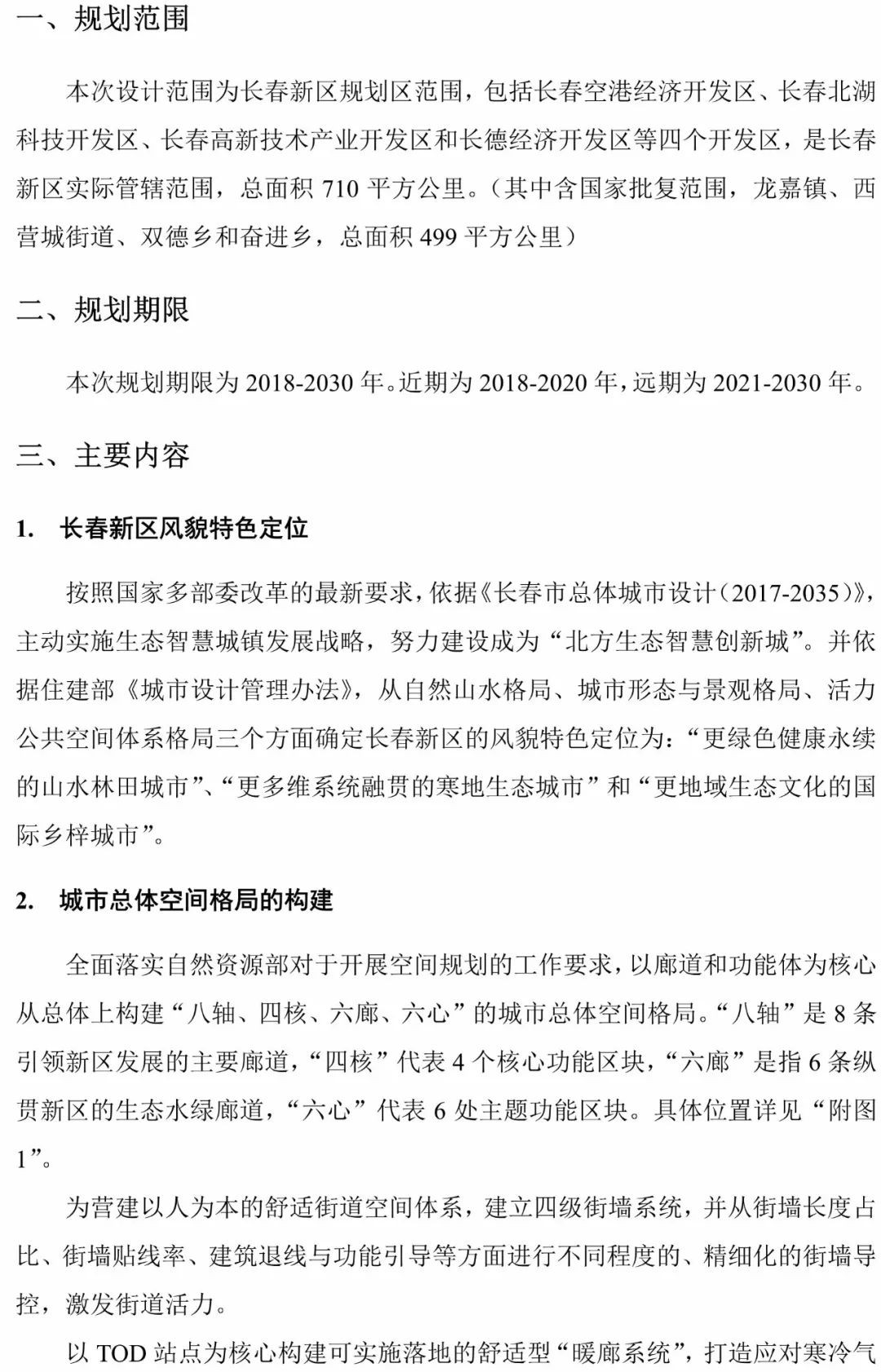 近日,长春新区政务网发布《长春新区总体城市设计(2018-2030)批前公示》,本次设计范围为长春新区规划区范围,包括长春空港经济开发区、长春北湖科技开发区、长春高新技术产业开发区和长德经济开发区等四个开发区。具体内容如下: