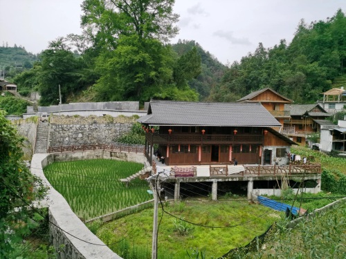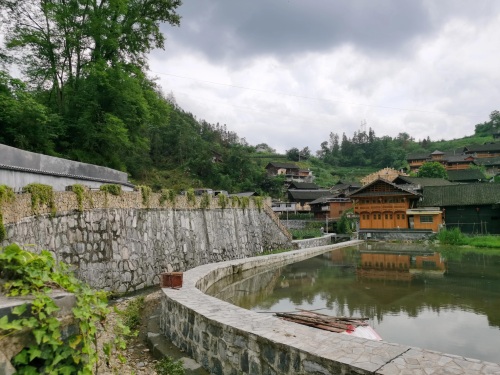 一进村口,错落有致的吊脚楼、清澈见底的小溪,便让人感受到湘西村寨独有的风情。沿溪行,步行数十步,前方豁然开朗——这是一处青山环抱的谷地。