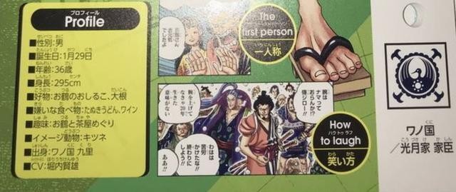 锦卫门的生命卡图鉴相较之前,基本信息补充了【赤鞘九侠】、【忍者海贼同盟】这两个势力设定。有意思的是,这一次更新尾田把混子锦卫门给画了进去。
