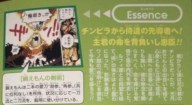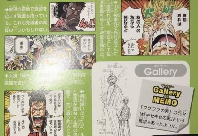 生命卡中还提到一个很有趣的信息,在早期的设定时,锦卫门魔果实是叫换换果实,后来正式登场时被改为了【服服果实】。从果实名字上不难判定,锦卫门的实力被大大削弱了。