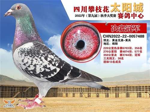 相比前面几家公棚,攀枝花太阳城公棚在赛程的设置上显得更为小心翼翼,一关220公里、二关270公里、三关350公里,赛线也基本一致。事实证明这样的练习是有效的,270公里预赛,冠军分速1710.13米/分;350公里决赛,冠军分速1761.39米/分,两关归巢率都保持在7成左右。鸽主黄金兄弟-黄兵的2022-22-0057488雨点前两关都表现良好,决赛关更是一举发力拿下冠军。