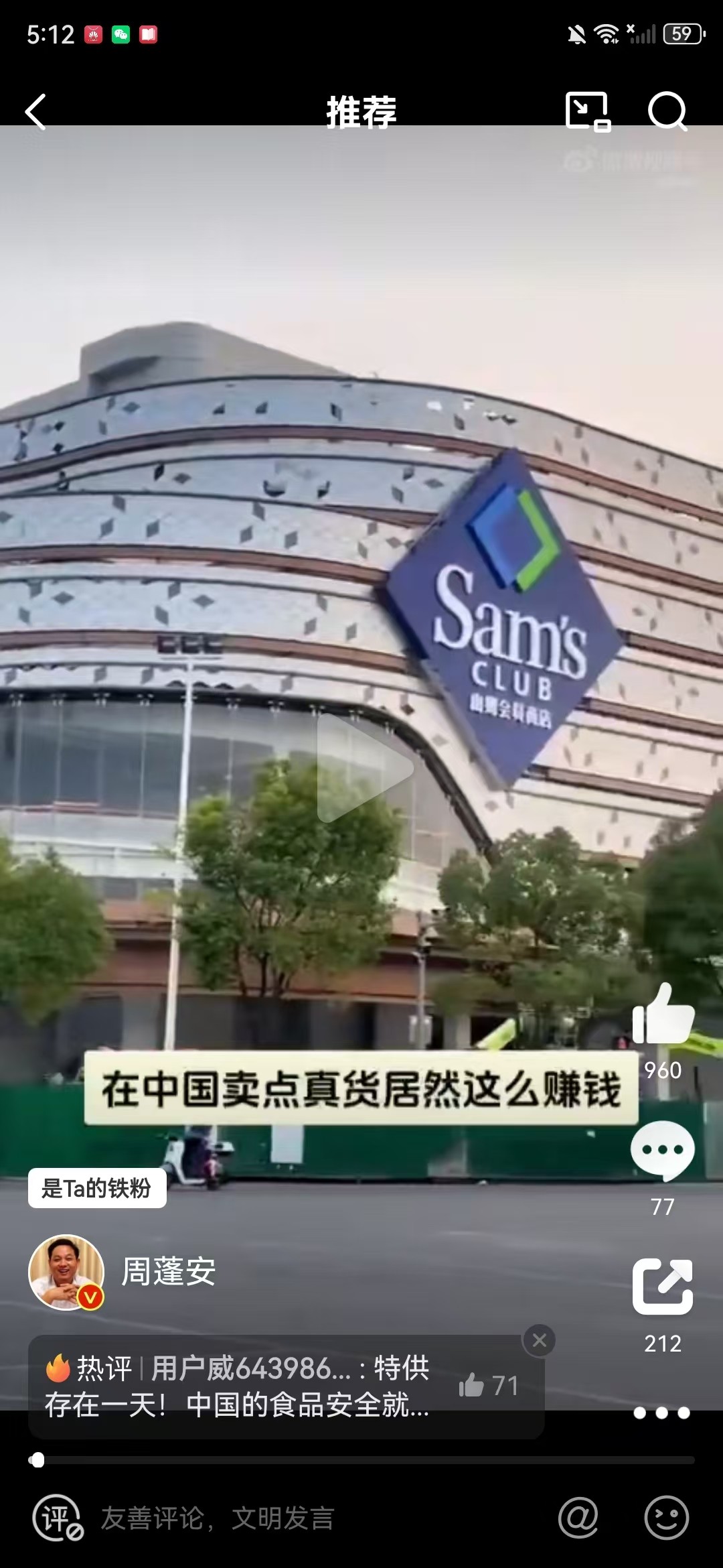 山姆超市无疑是一家外企了,并且还是我们最厌恶的老美的企业。我不知道身在上海的张维为教授,是否是山姆超市的会员,是否也会去山姆超市排队购物。按照正常的逻辑,像张维为教授这样身份的人,肯定比我们普通人更加在意自己的身体的,而一年260元的会员费,对于张维为教授来说,更是不值一提的。张维为教授估计还不够特供的级别吧?假如张维为教授当年的论断成立,山姆超市撤出了中国市场,那么张维为教授的所谓的百年机遇就是他可以免费吃到众多的科技与狠活了吗?可以与民共乐吗?