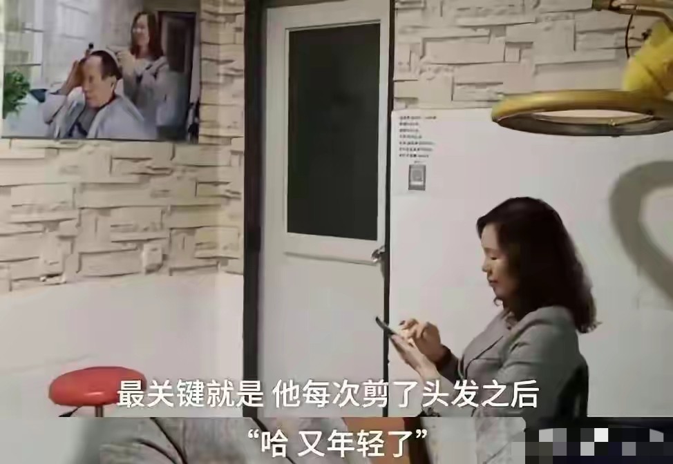 理完头发后,袁老又兴奋的看到镜子中自己的新形象,哇,又年轻了5岁。