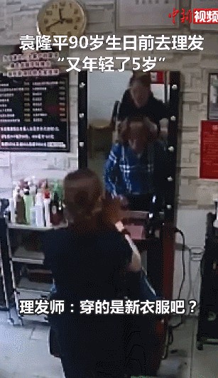 90岁生日前一天,袁老特地穿上新衣服,到路边常去的一家理发店,亲手设计了一个帅帅的发型。