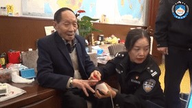 2019年,湖南长沙民警上门为袁老办理新的身份证时。