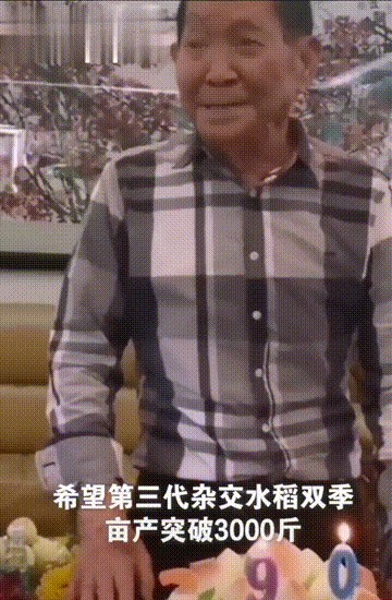 去年袁老90岁大寿生日宴上,他许了愿:第3代杂交水稻,两季亩产3000斤,要早日实现。