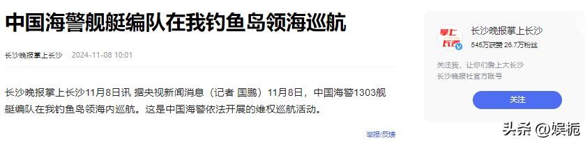 长沙晚报掌上长沙所发布《中国海警舰艇编队在我钓鱼岛领海巡航》