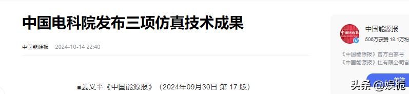 中国能源报所发布《中国电科院发布三项仿真技术成果》