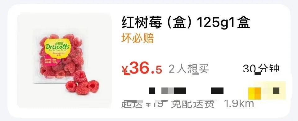 小编刚刚翻了下外卖软件一盒125g的树莓最高售价36.5元