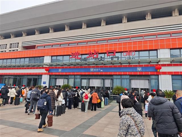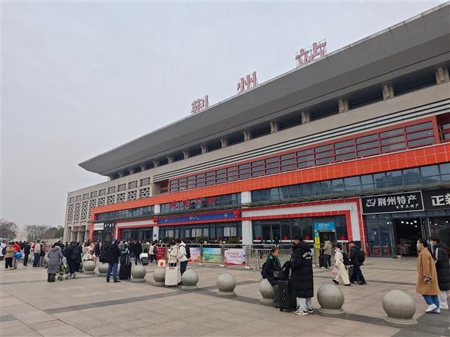 江汉风报道:随着春节假期的结束,不少人都踏上了返程的列车,荆州火车站也迎来了返程高峰,站前广场充满了离别的气息。