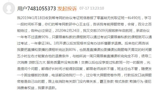 帮考网被曝向不具备资格的考生推荐课程 频现问题遭消费者投诉