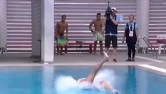 相信很多人都看过下面这两个动图或者是视频,讲述的是两位菲律宾跳水运动员的“完美”落水。第一个上场的是17岁的选手约翰大卫帕霍友,可以看到,他起跳之后一个完美的后空翻,然后......膝盖落水。裁判当场给出了零分。