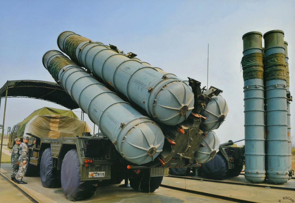 S-400 防空导弹,北约代号为 SA-21 Growler,是俄罗斯的一款中远程防空导弹系统,由金刚石 - 安泰公司设计生产,于 1999 年启动研制,2010 年服役,是 S-300 防空导弹 PMU3 型的深度现代化升级版本,主要用于从超低空到高空、近距离到超远程的全空域对抗密集多目标空袭,并针对第五代战斗机和复杂的干扰与对抗环境进行了特别优化,具备反战术和中程弹道导弹的能力,也是俄罗斯的一种核心军火出口产品,中国、印度和土耳其等国均有引进。