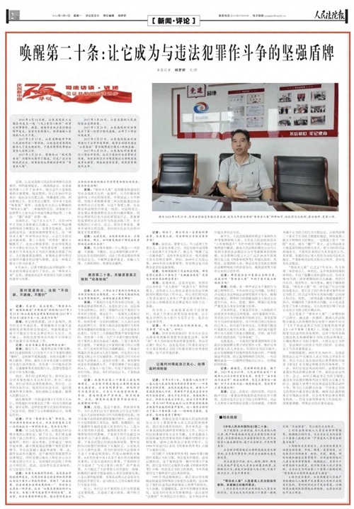 【原题】 唤醒第二十条:让它成为与违法犯罪作斗争的坚强盾牌