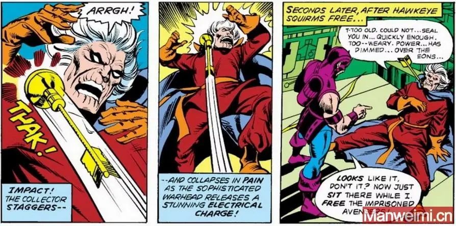 之后,当双枪小子和复仇者联盟其他许多成员逐渐神秘失踪时,克林特又重新加入到复仇者联盟,并在得知其他复仇者均被幕后元凶——被身为宇宙长老的“收藏家(Collector)”所绑架,克林特则凭借自己的箭术和策略单枪匹马打败了对方,并与31世纪的银河护卫队一起最终战胜了科瓦克(Korvac)。而双枪小子使用收藏家的时间机器再次回到了自己的时代。