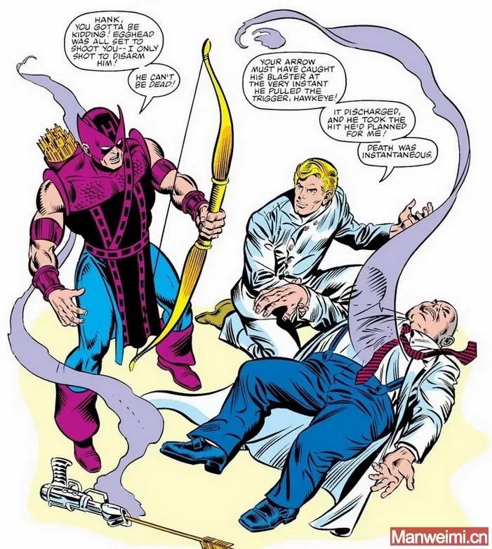 为了应对将来会失控的班纳博士(他秘密的在用未处理过的伽马细胞对自己进行实验),在一场对话冲突中鹰眼用箭射中了即将失控班纳博士,杀死了对方。事后,鹰眼被判无罪(因为布鲁斯·班纳当时曾请求他,在他表现出变成绿巨人迹象时立即杀死他),但这件事却大大破坏了英雄们之间的关系及感情。