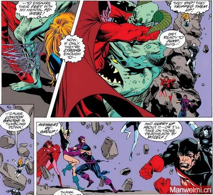 在西海岸复仇者联盟陷入恶魔墨菲斯托和撒坦尼什(Satannish) 之间的争斗期间,西海岸复仇者曾成功击败这两名恶魔,并将他们赶回到自己的维度。