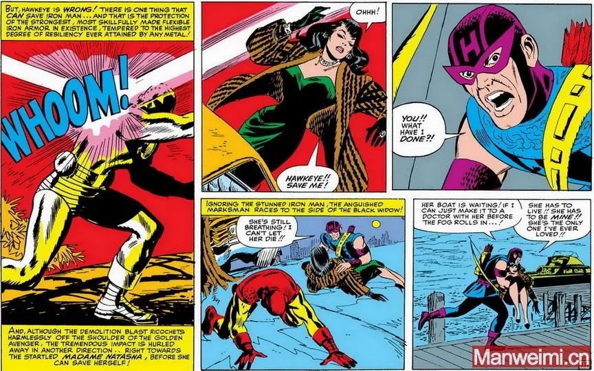 但就在鹰眼认为他们可以修复破碎的宇宙魔方,并用它来恢复罗杰斯正常的想法时,黑寡妇却决定杀死罗杰斯来阻止他的计划。尽管他们的观点相反,可鹰眼还是重新爱上了黑寡妇,并为她死于邪恶的史蒂夫·罗杰斯之手而感到悲痛欲绝。