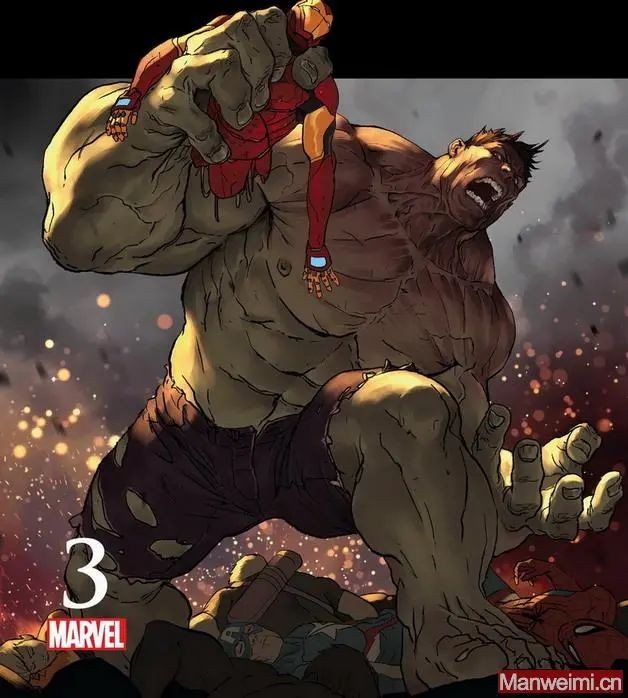 在大事件“内战二”期间,拥有预测未来能力的异人族”尤里西斯·凯恩 (Ulysses Cain) “在预测未来的影像时看到了失控的绿巨人站在许多超级英雄的尸体上。