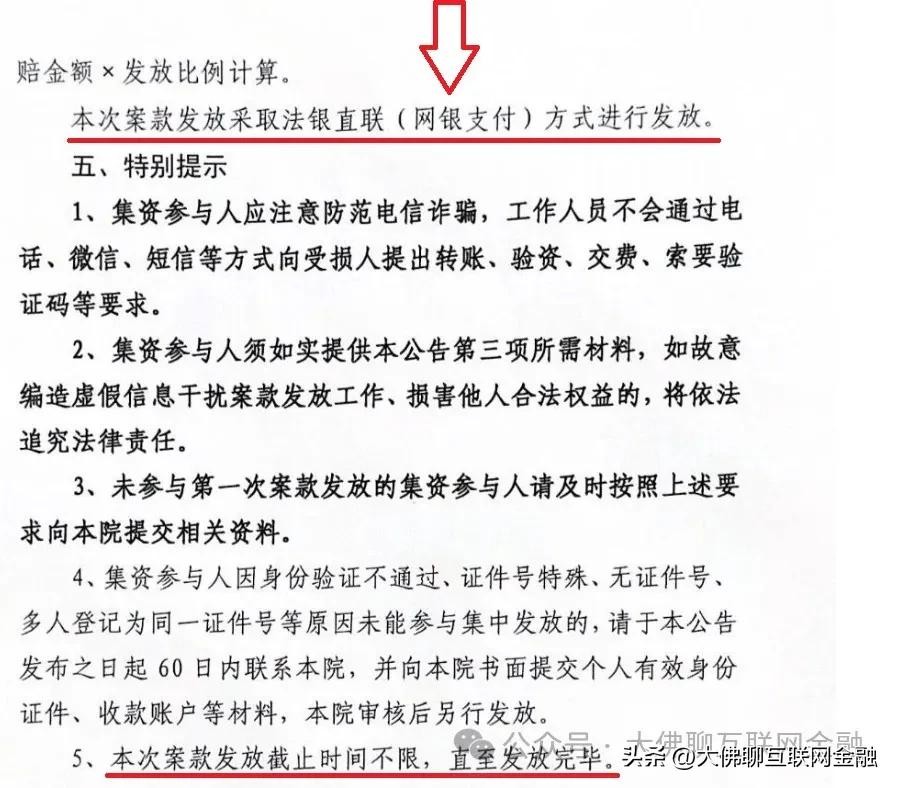 案件所在区域一般多是委托工商银行办理执行款的发放,当地同类型的案款有采用三个月工行定期存单的形式发放,12月30日的消息中并没有明确是否是存单的形式,但领取的方式基本一致,都是由负责案件退赔工作的司法部门专门先为受损人开办一个新的虚拟账户,对应案款之后会直接划拨在这个账户上。
