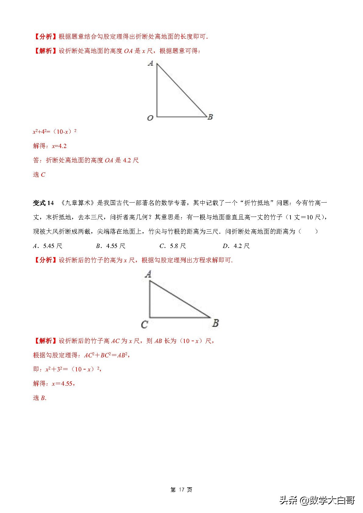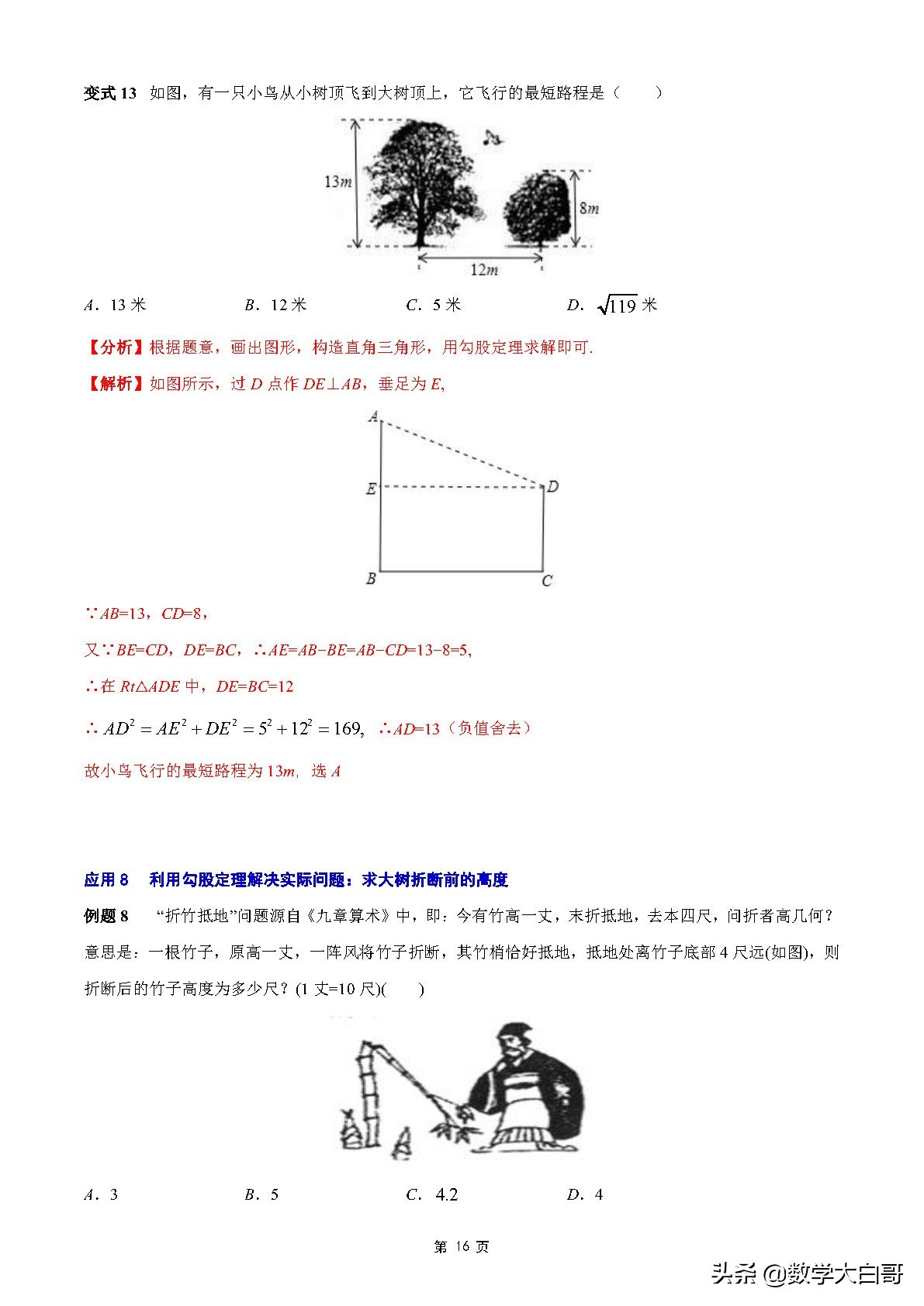应用8:利用勾股定理解决实际问题——求大树折断前的高度