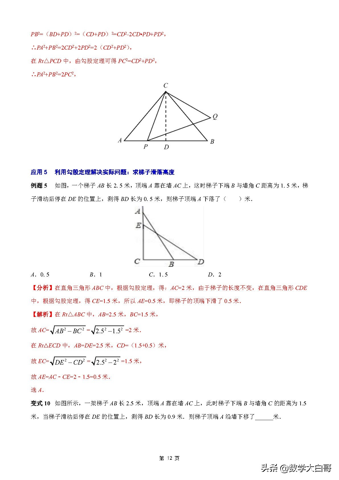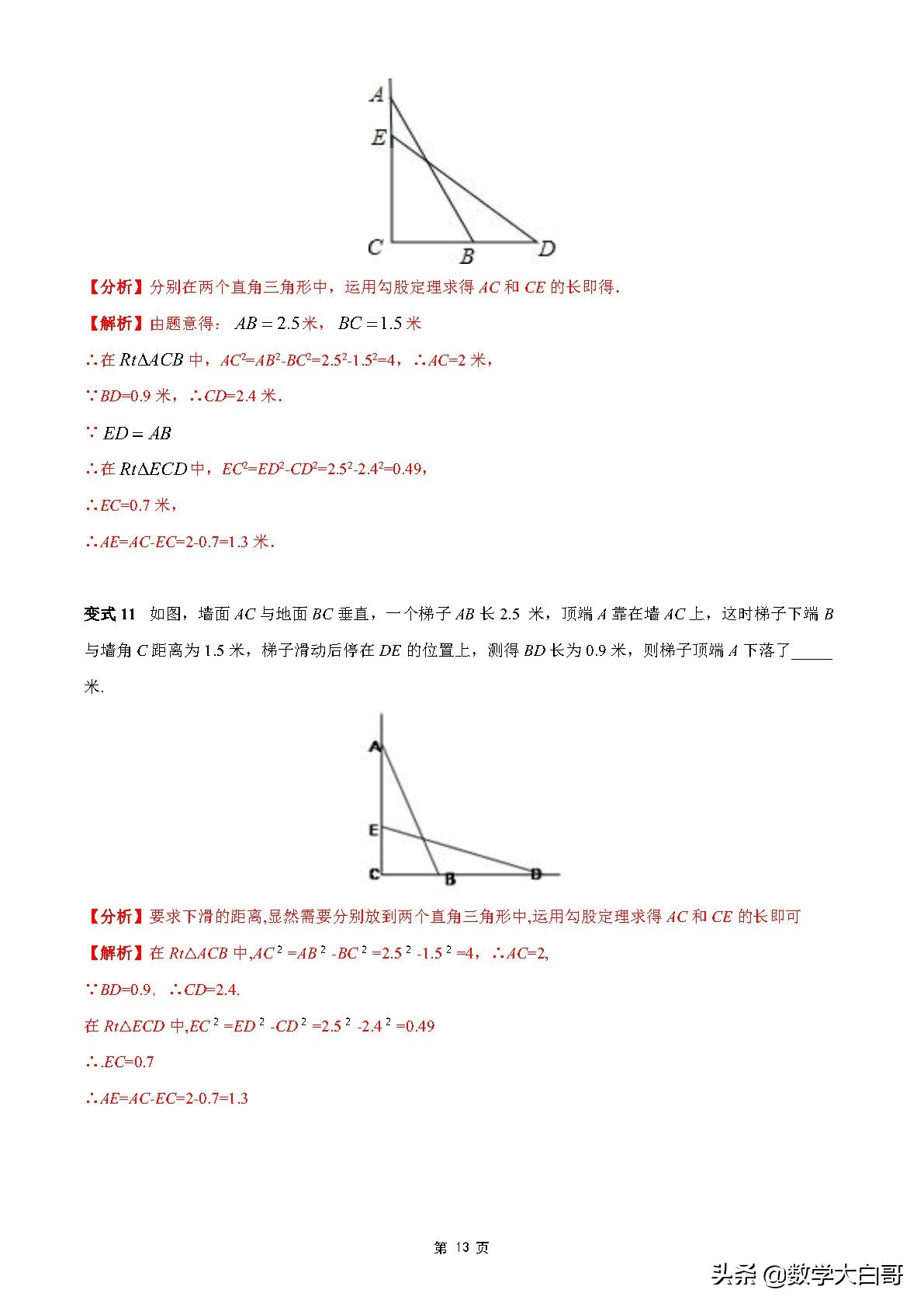 应用5:利用勾股定理解决实际问题——求梯子滑落高度
