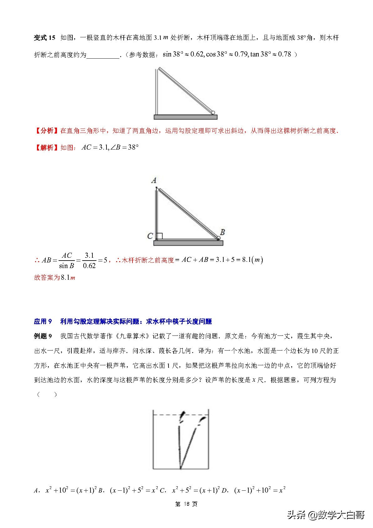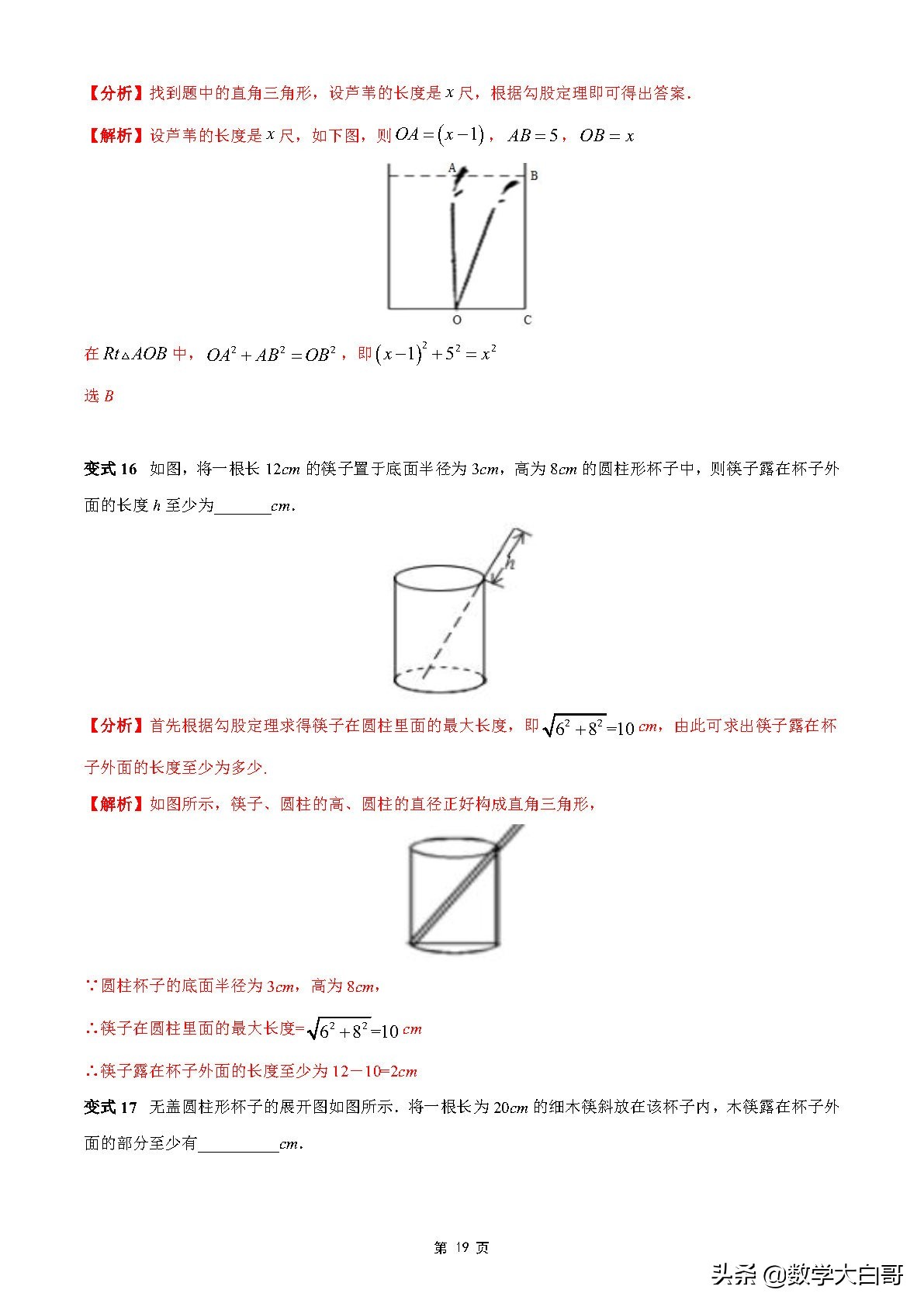 应用9:利用勾股定理解决实际问题——求水杯中筷子长度问题