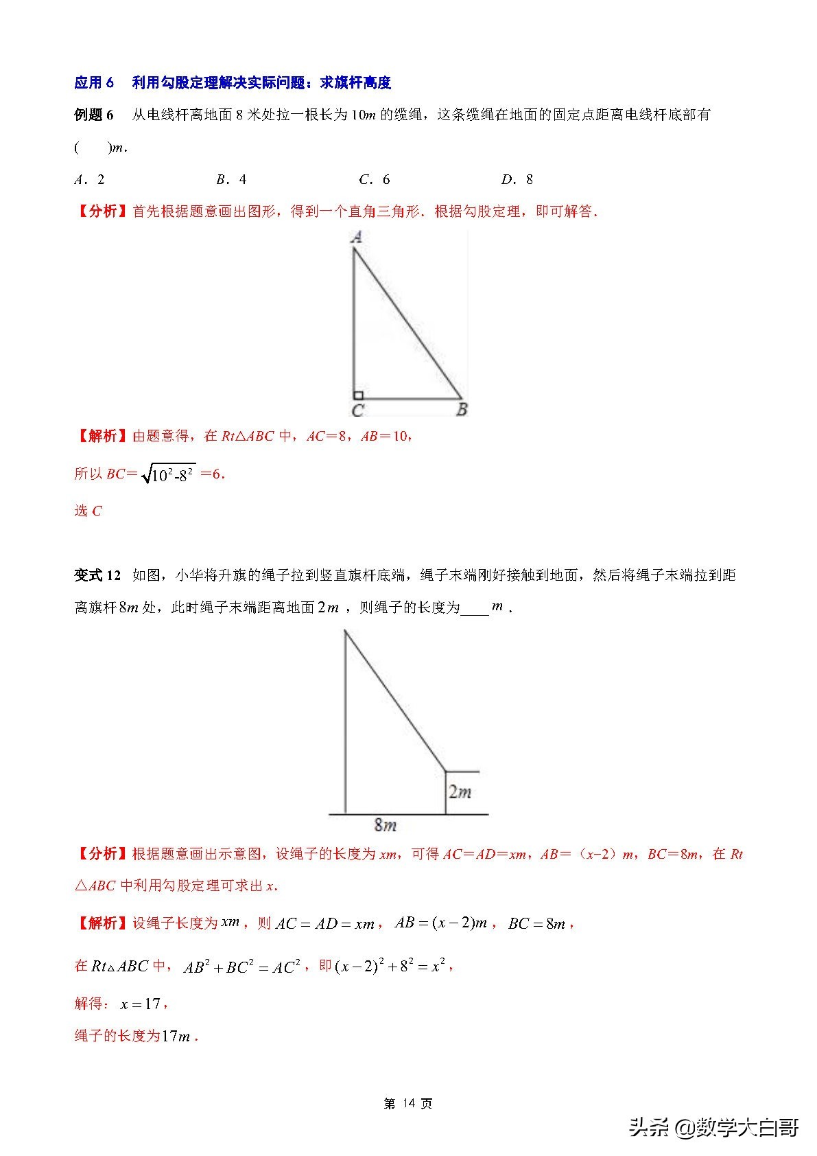 应用6:利用勾股定理解决实际问题——求旗杆高度