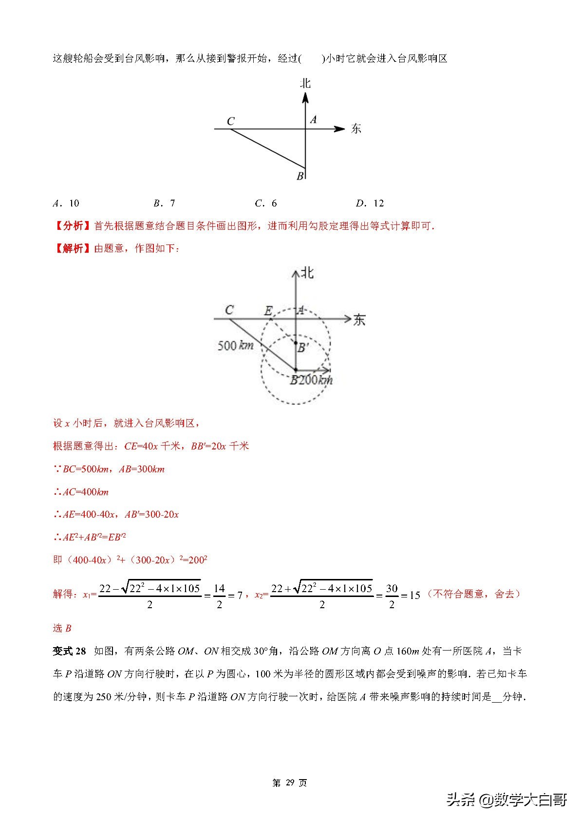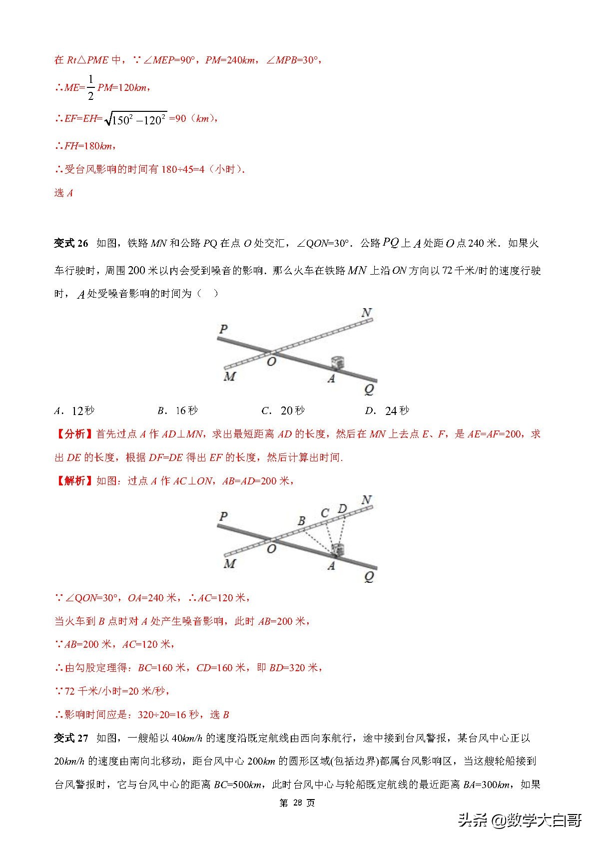 应用14:利用勾股定理解决实际问题——判断是否受台风影响