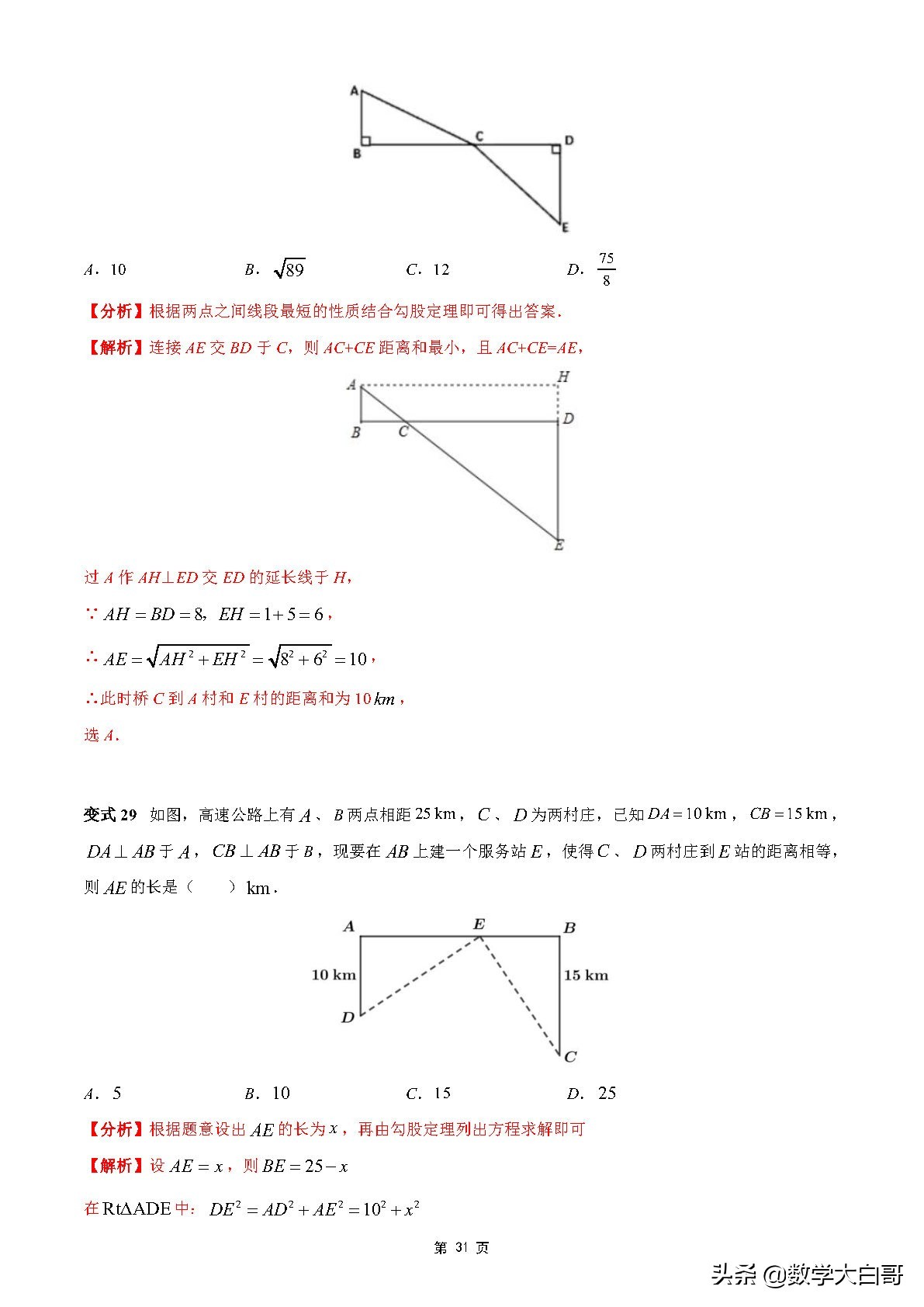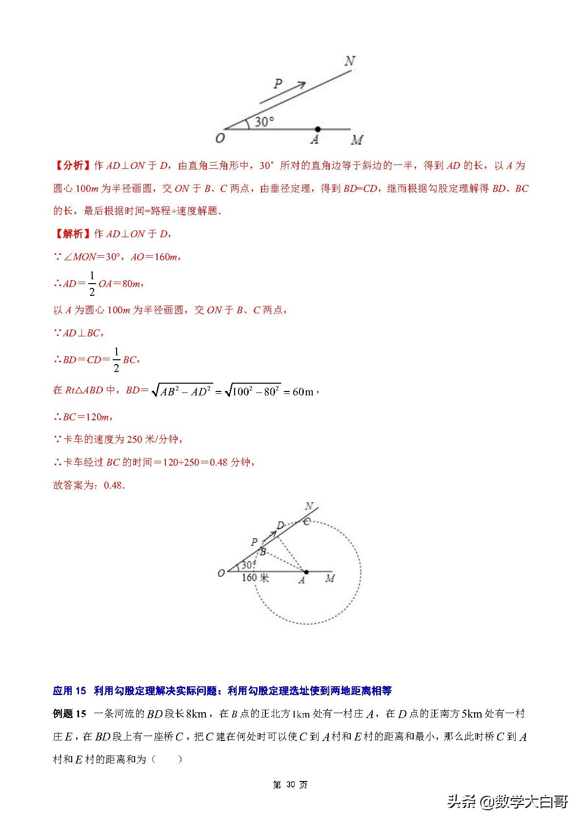 应用15:利用勾股定理解决实际问题——利用勾股定理选址使到两地距离相等