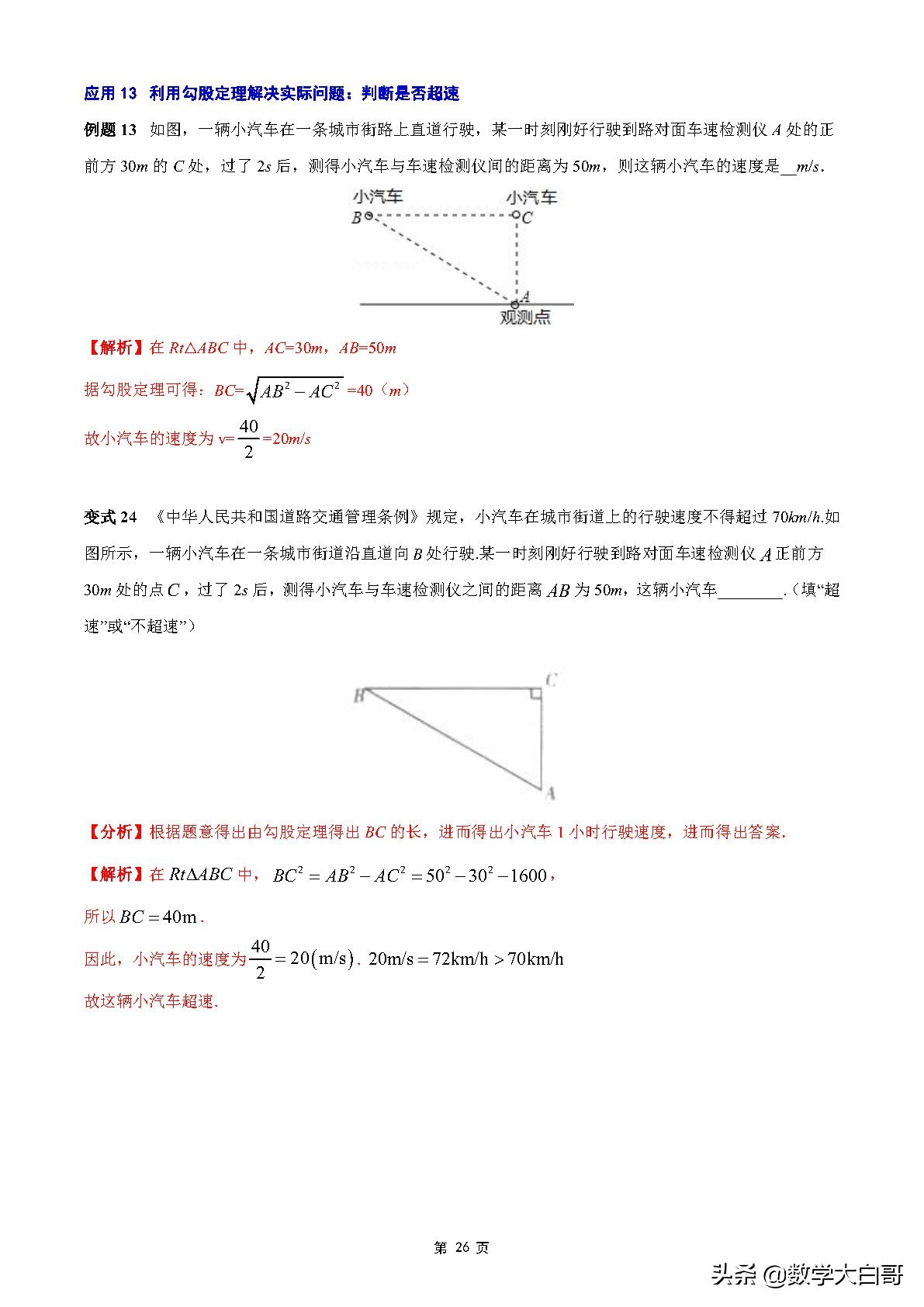 应用13:利用勾股定理解决实际问题——判断是否超速