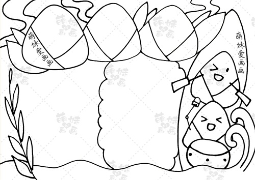 我们用粽子和香囊作为手抄报的文字边框,用赛龙舟的粽子拟人形象来作为装饰,这样的搭配简单又好看。