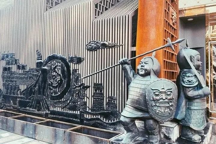 罍是商周以及春秋战国时期的一种用于盛酒的青铜器,相当于今天的酒坛。合肥自有炸罍子的传统风俗。为了体现"罍"文化,建设方用青铜制作一个"罍"雕塑,立于罍街中,作为镇街之宝。