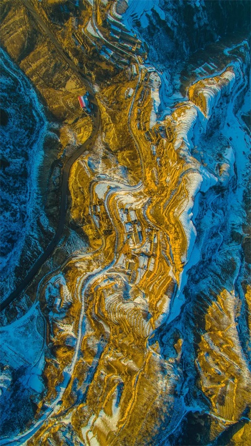 ▲ 吕梁方山积翠乡,雄浑壮美黄土梯田。摄影/刘和平