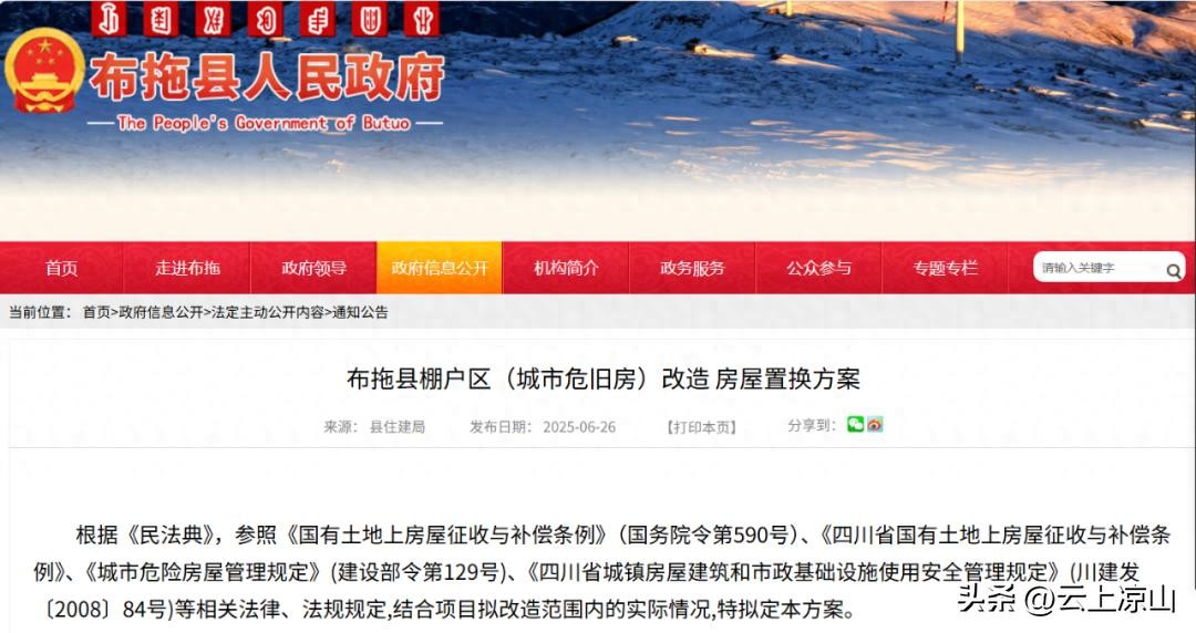 布拖县公布棚户区(城市危旧房)改造 房屋置换方案