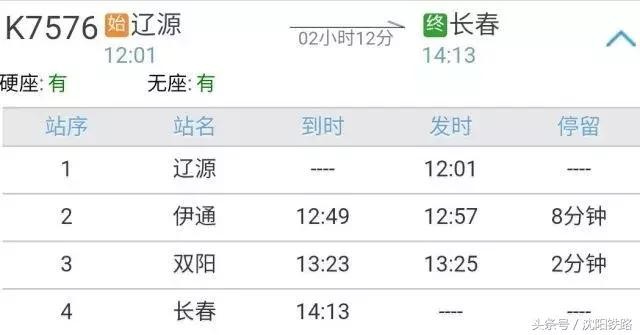 k7576次12:01分辽源发车,到达长春14:13分。k7578次14:09分辽源发车,到达长春16:30分。