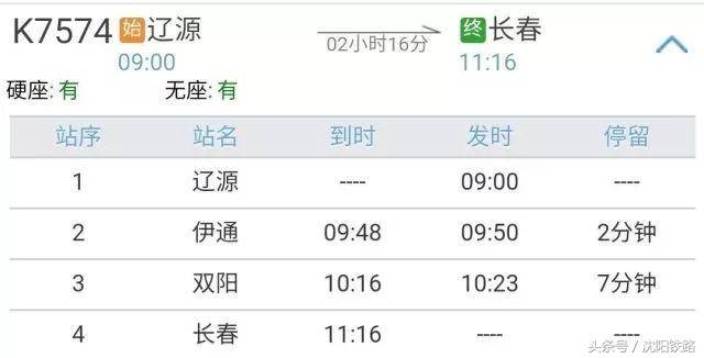 k7574次9:00分辽源发车,到达长春11:16分。
