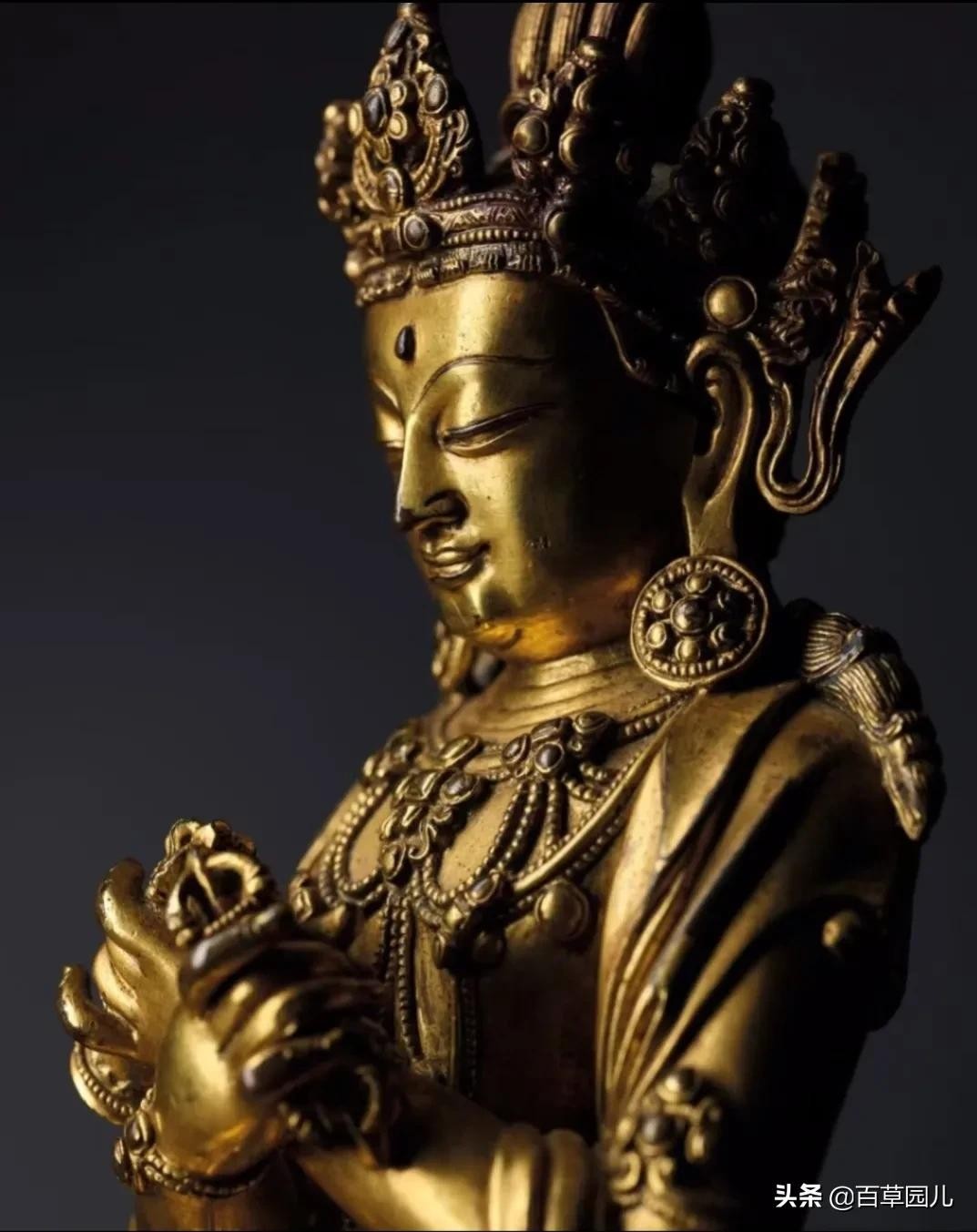 整尊来看,比例优雅、容貌慈祥、手势精致,可谓融合了当时最顶尖的铸造和镀金工法,并以璀璨珠宝、华丽镀金,完美体现出永乐工艺的巅峰造极,堪称汉传佛像杰作。