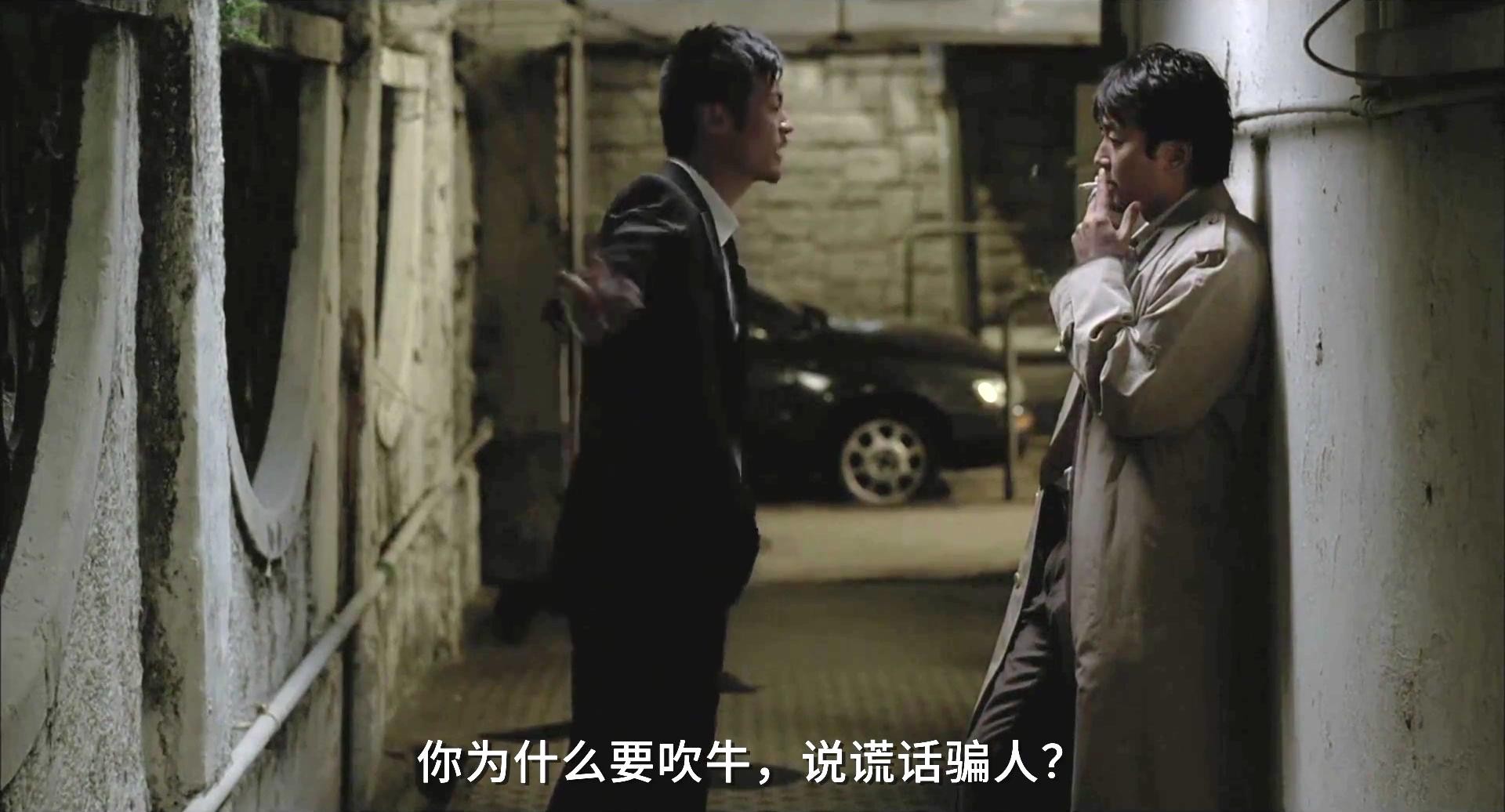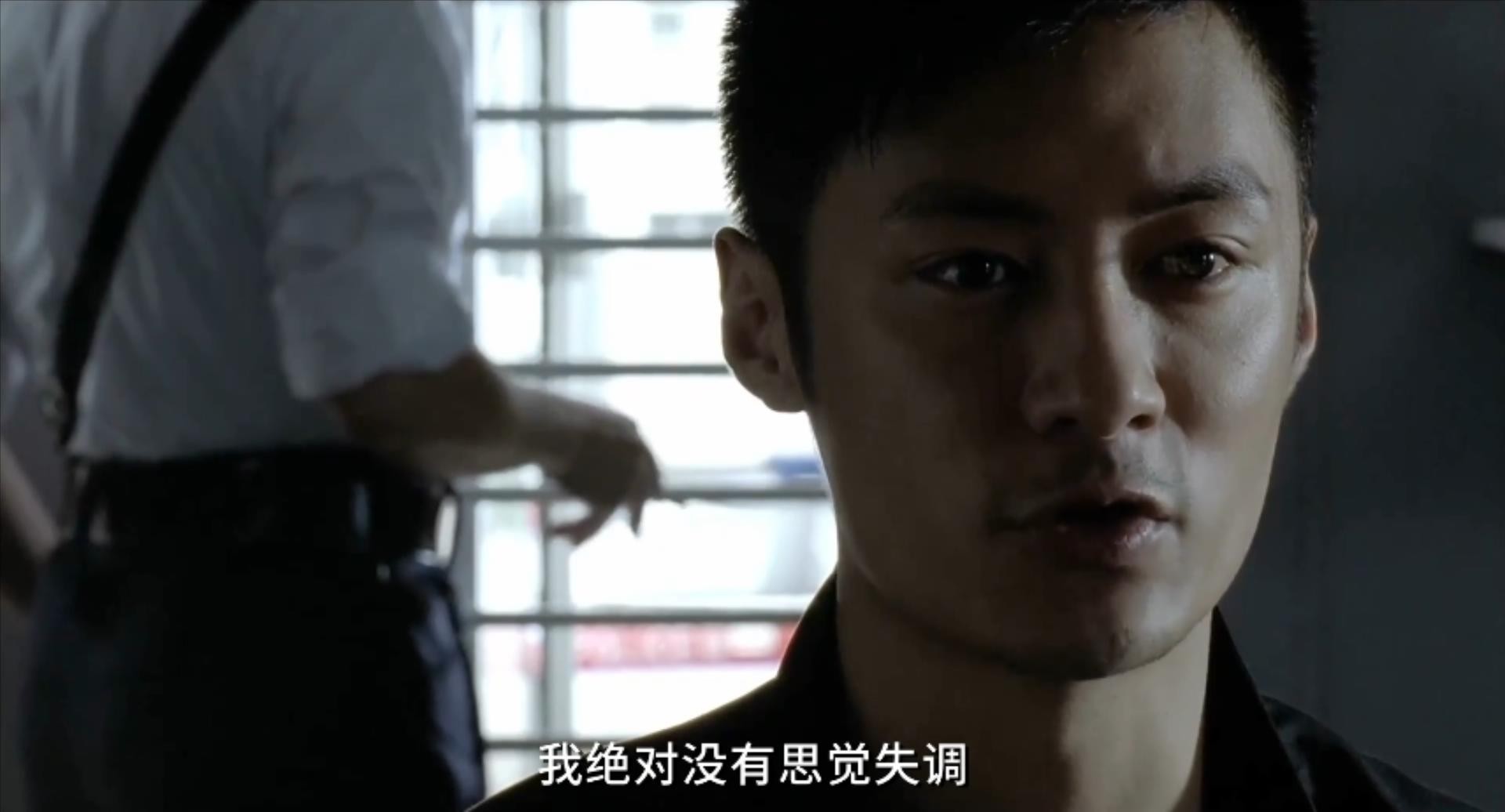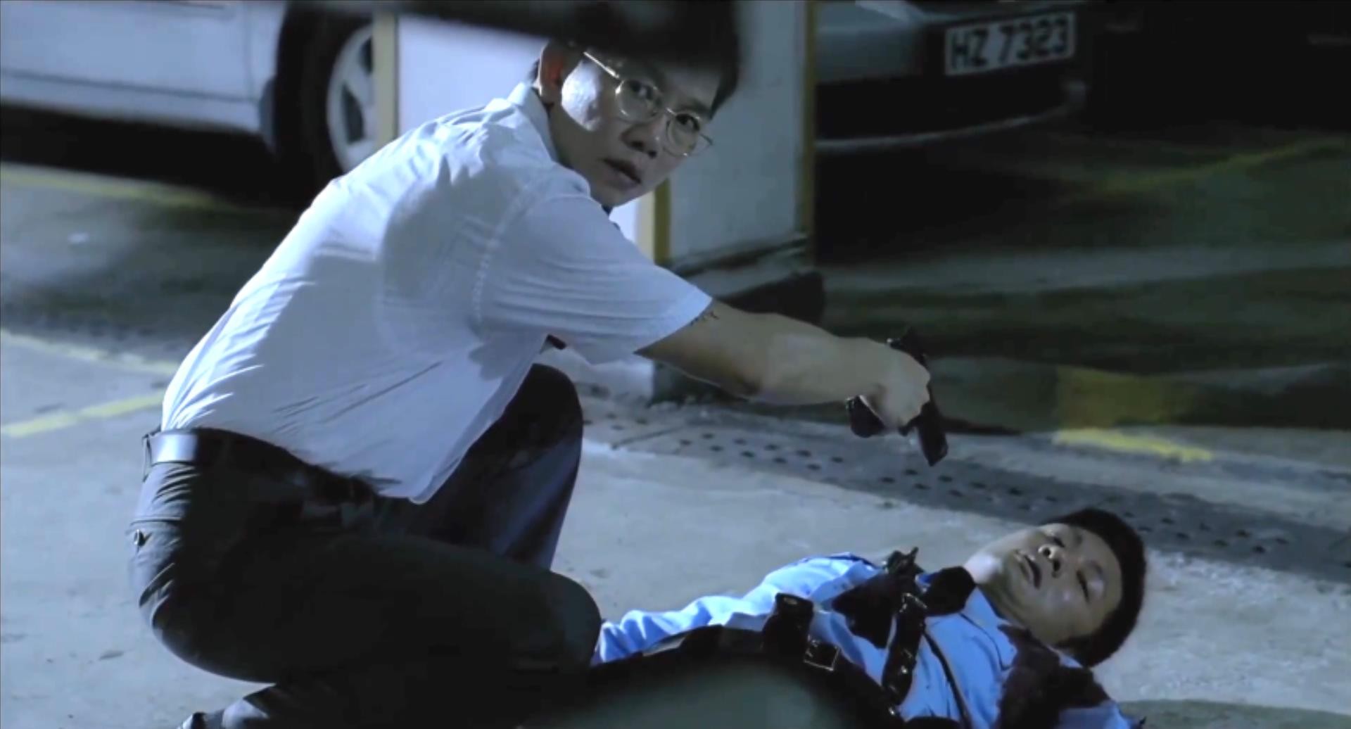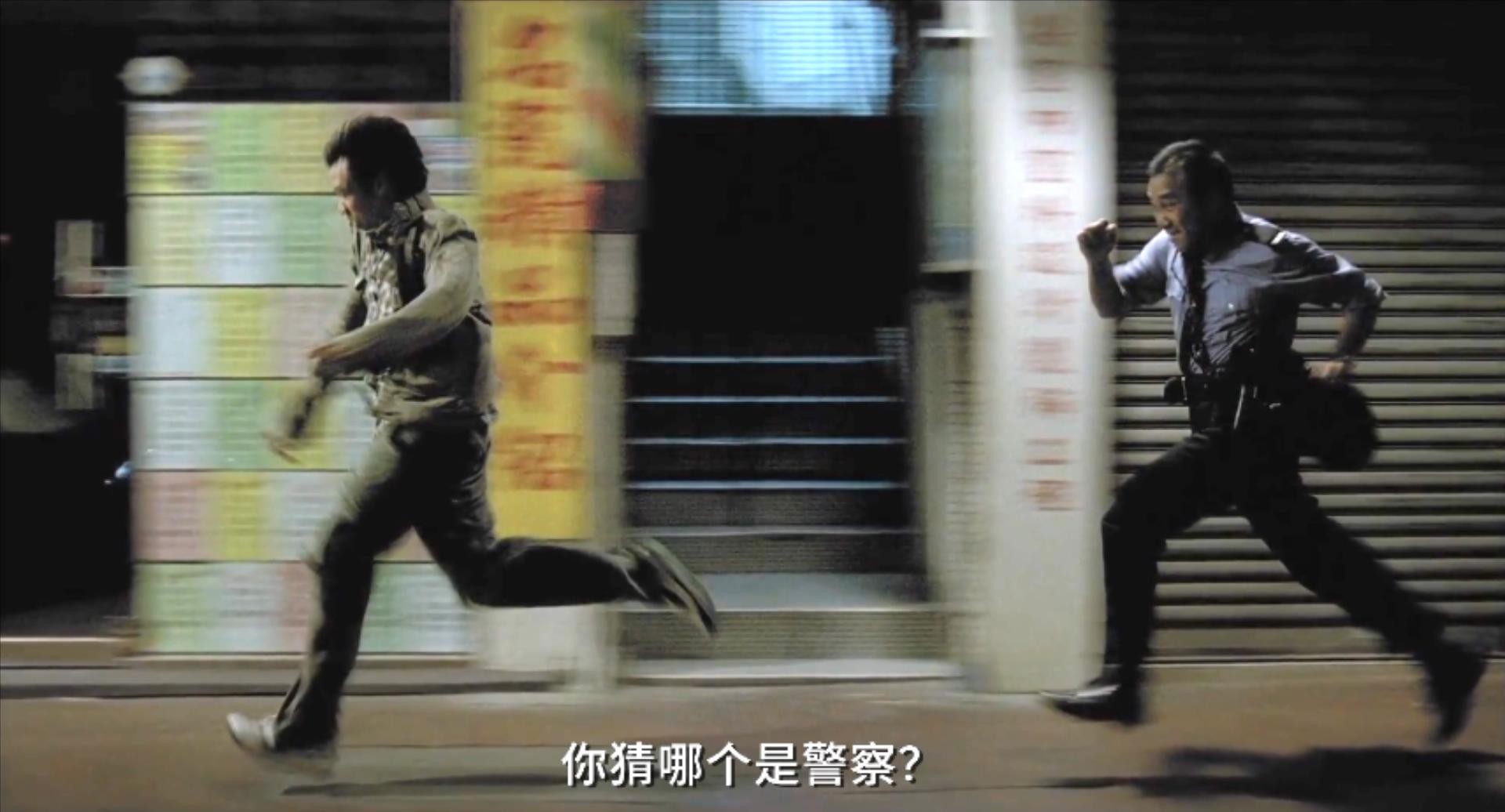 电影开场就是一场追逐戏,一名警察正在追逐一名身着便装的男子,观众通常会认为这是警察抓逃犯,可实际上这两人都是警察;眼镜出场坐在轮椅上,可他腿部并没有残疾,这也为《第一诫》奠定了“眼见并不一定为实”的基调。