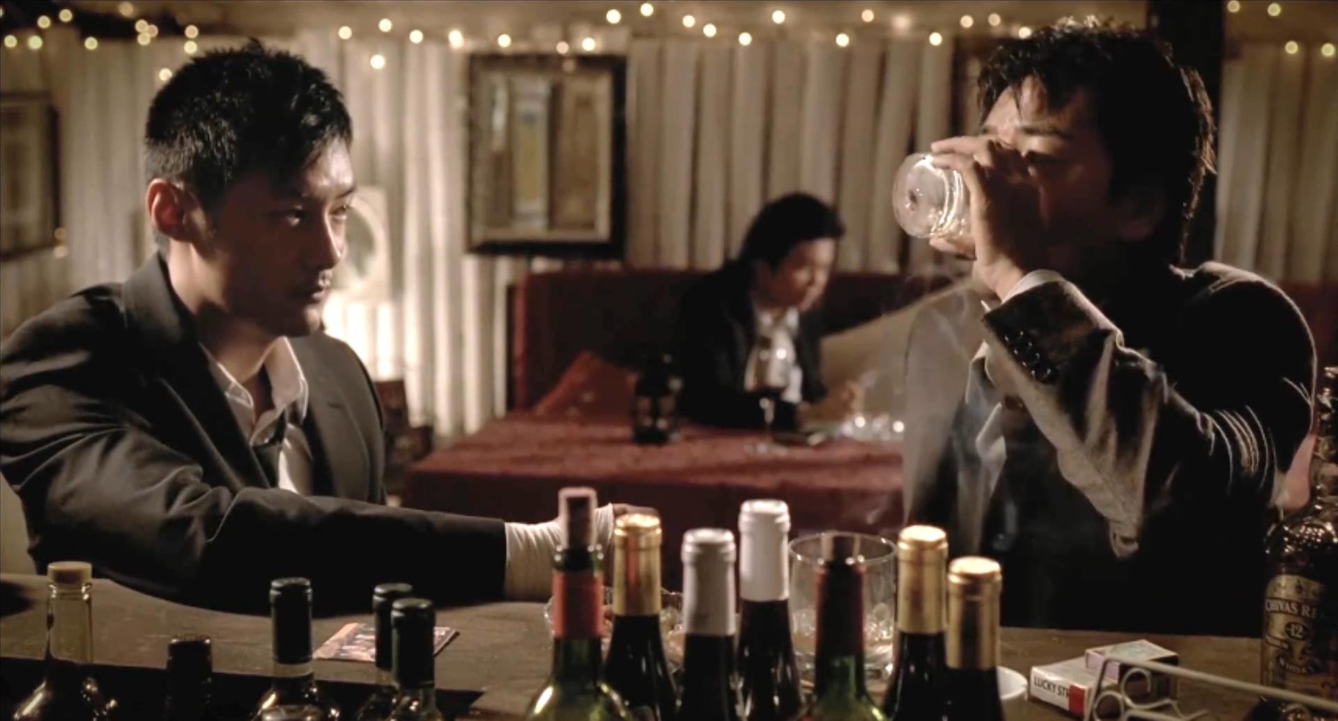 从黄SIR一出场,他就是一副醉醺醺的模样,而电影几次给了黄SIR喝酒的镜头,可影片结尾上司拿起黄SIR的酒瓶却发现里面装的是水。不要小看这个细节,因为这就和《盗梦空间》中的陀螺一样,是鉴别现实的参照物。