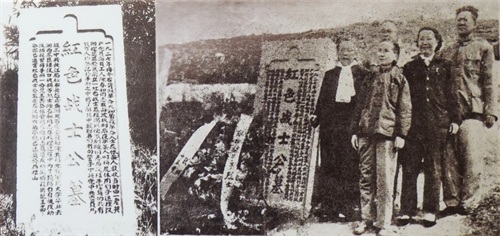 图为1955年,为修建长江大桥,武汉市政府将向警予等革命烈士遗骨由汉阳补乾亭迁葬扁担山,并重立“红色战士公墓”石碑以资纪念。1964年6月,中共中央组织部原副部长帅孟奇、新中国首任监察部部长钱瑛等中央领导前往红色战士公墓凭吊 向警予烈士纪念馆展陈照片