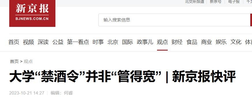 新京报 【2023-10-21】《大学“禁酒令”并非“管得宽” | 新京报快评》