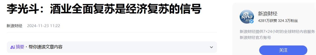 新浪财经【2024-11-23】《李光斗:酒业全面复苏是经济复苏的信号》