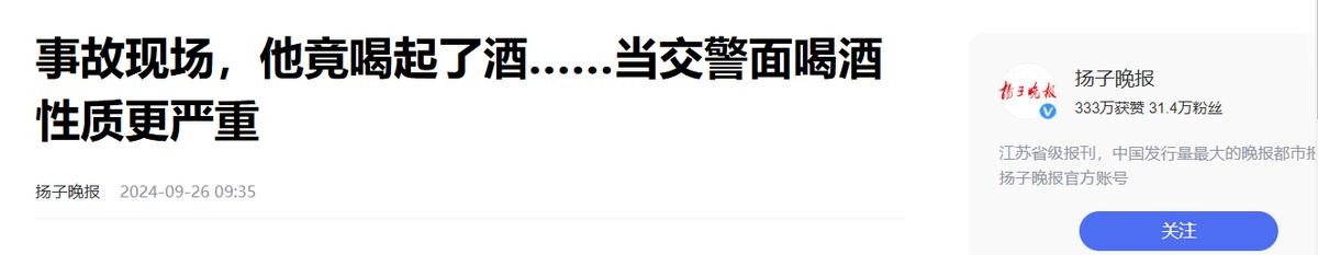 扬子晚报【2024-09-26】《事故现场,他竟喝起了酒……当交警面喝酒 性质更严重》