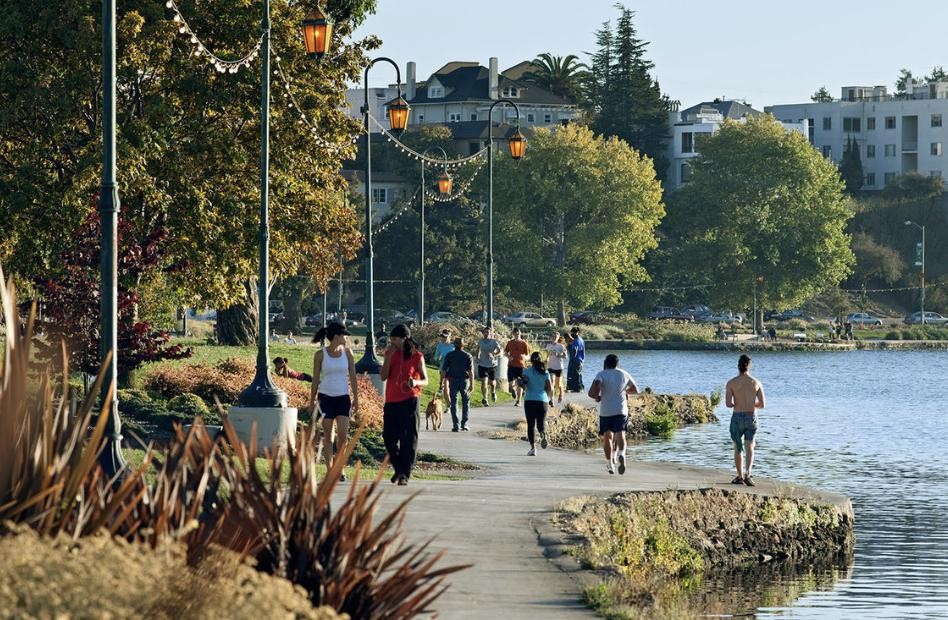 奥克兰市围绕梅里特湖而建,湖周围公园环绕,有花园中心、盆景园等,为城市居民提供了非常多休闲活动空间。梅里特湖面积约63公顷,是美国第一个官方野生动物保护区,1966年以来被列入国家史迹名录。梅里特湖吸引大量候鸟,不少鸟类将此作为自己的家园,因此在湖上常常可以看到各种鸟类,比如斑背潜鸭、加拿大鹅、夜鹭、白鹭、鸬鹚、小野鸭和白鹈鹕等。