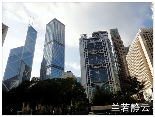 巴士是双层的,我们选择坐在楼上最前面的位置,在这里看风景和拍照都很方便。巴士从中环开出,沿途可以观看CBD的摩天大楼。